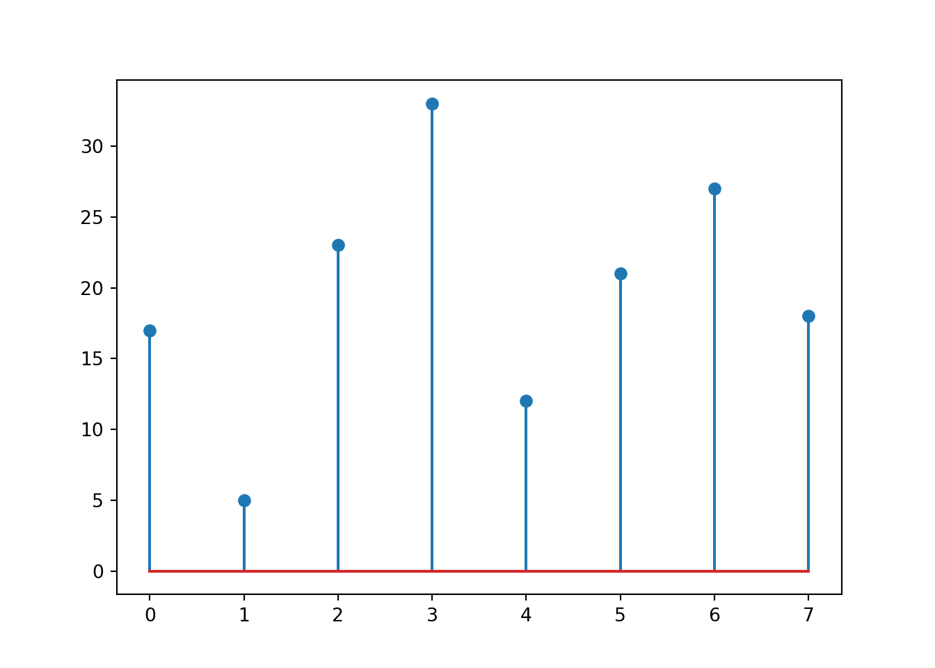 Alternatively, we could also visualize these values as a stem plot: