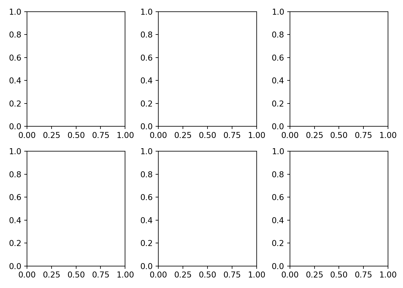 fig.set_tight_layout(True)This will adjust the spacing between the Axes objects so that no text or other elements are cut off or overlap. Let’s look at an example. First, we create a figure with two rows and three columns: