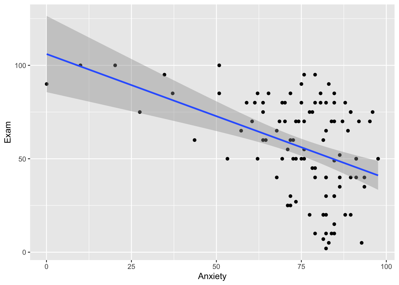 ggplot(exam, aes(Anxiety, Exam)) +
