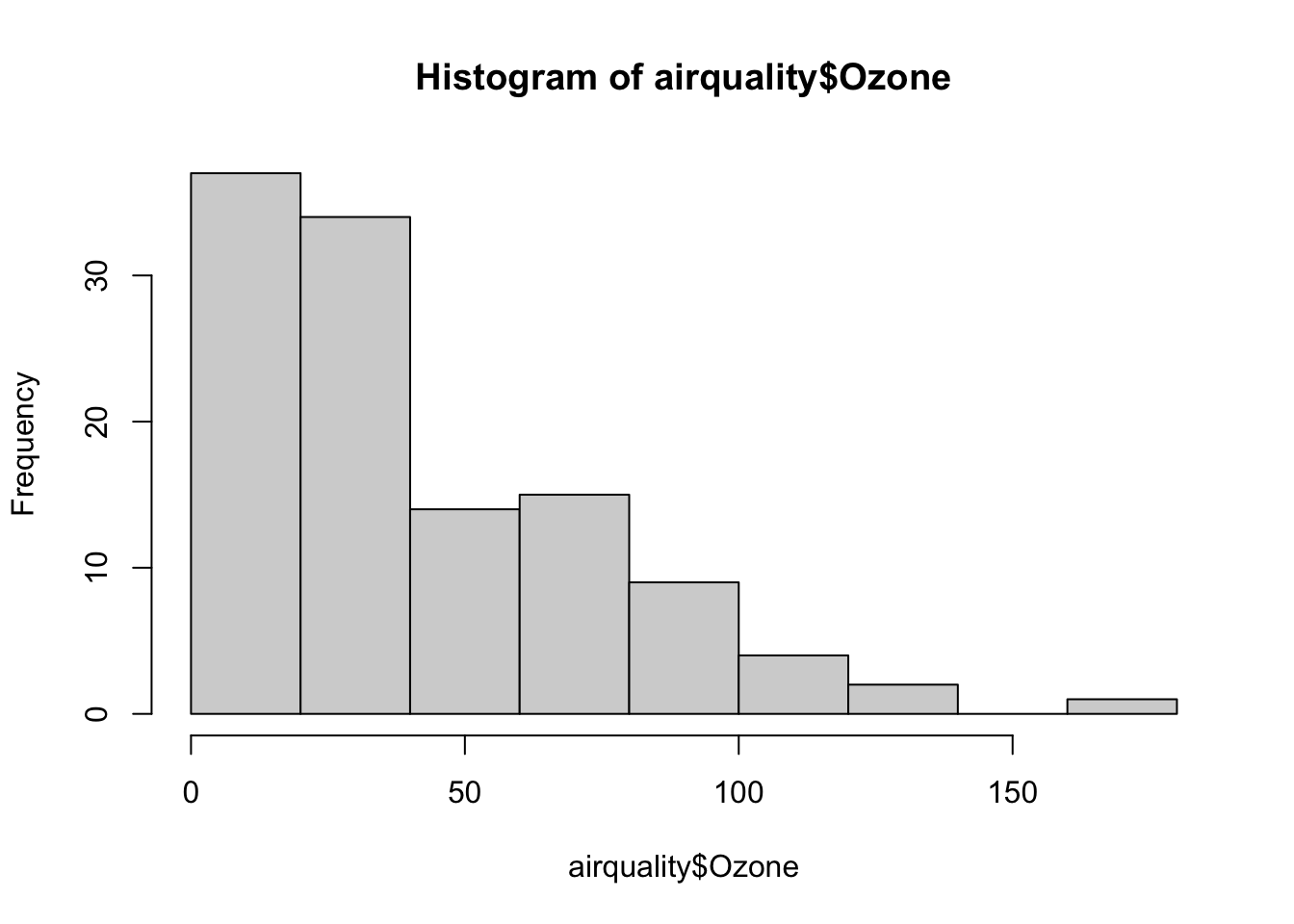 hist(airquality$Ozone)
