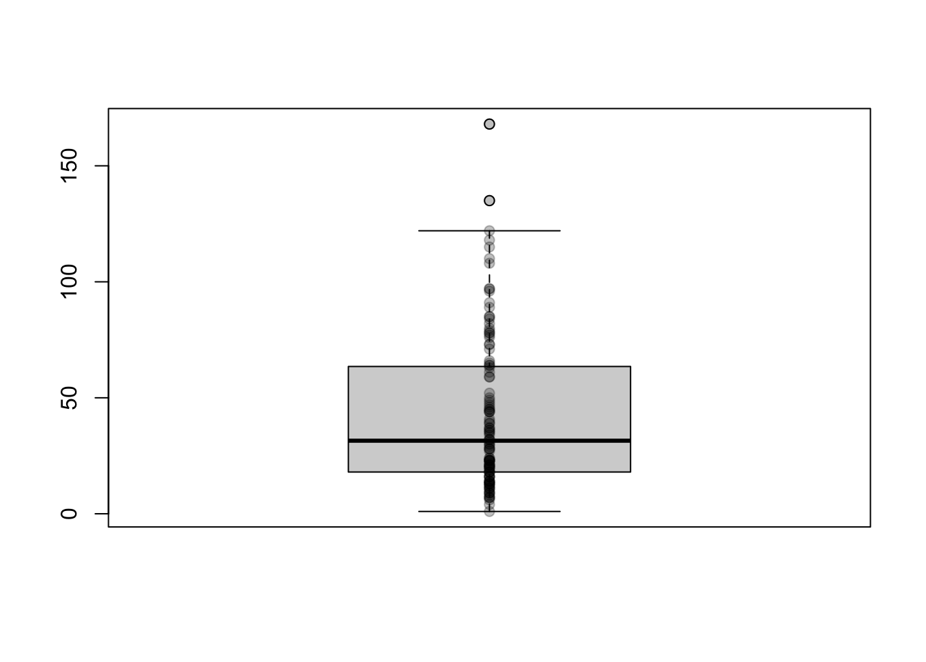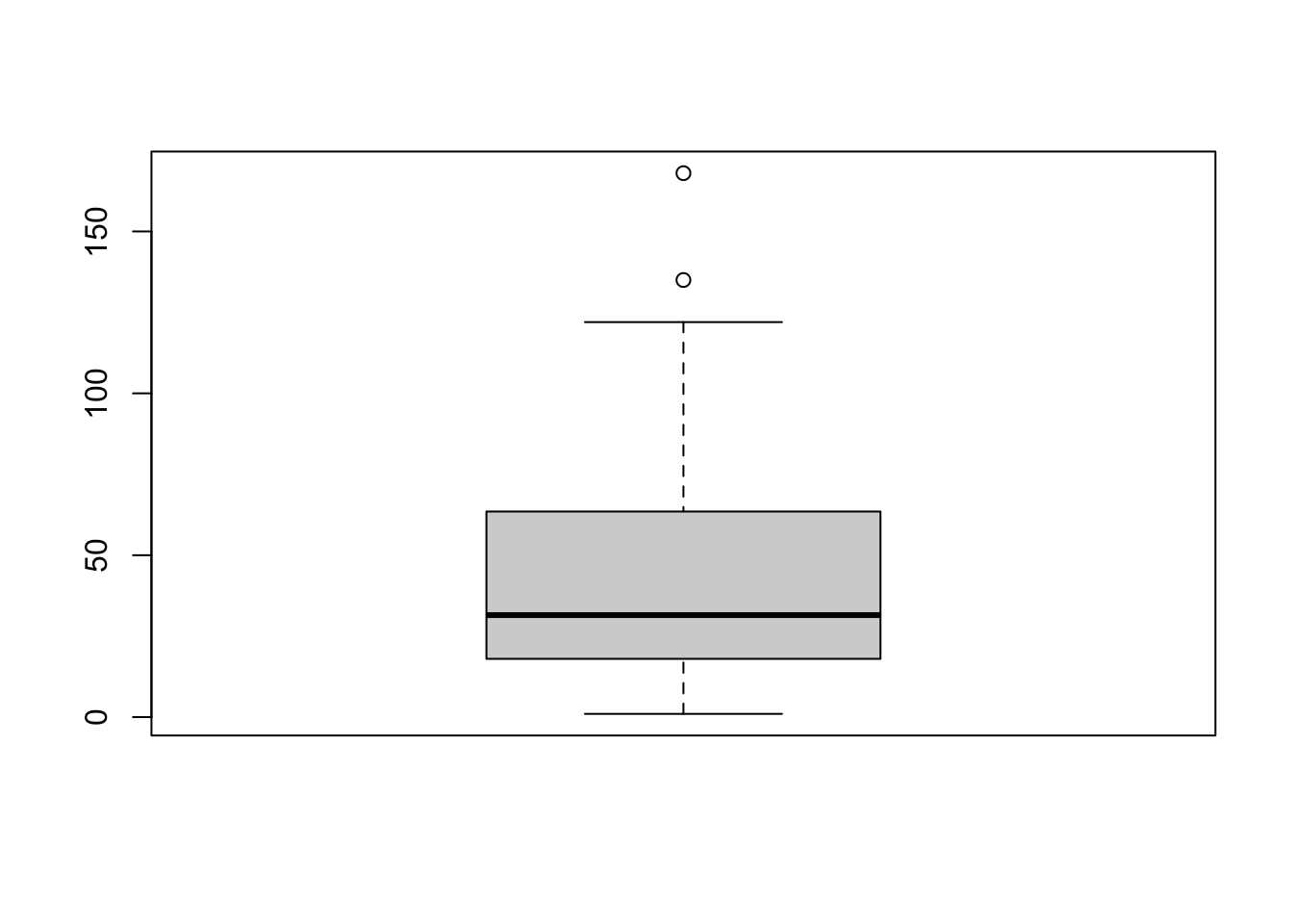 boxplot(airquality$Ozone)